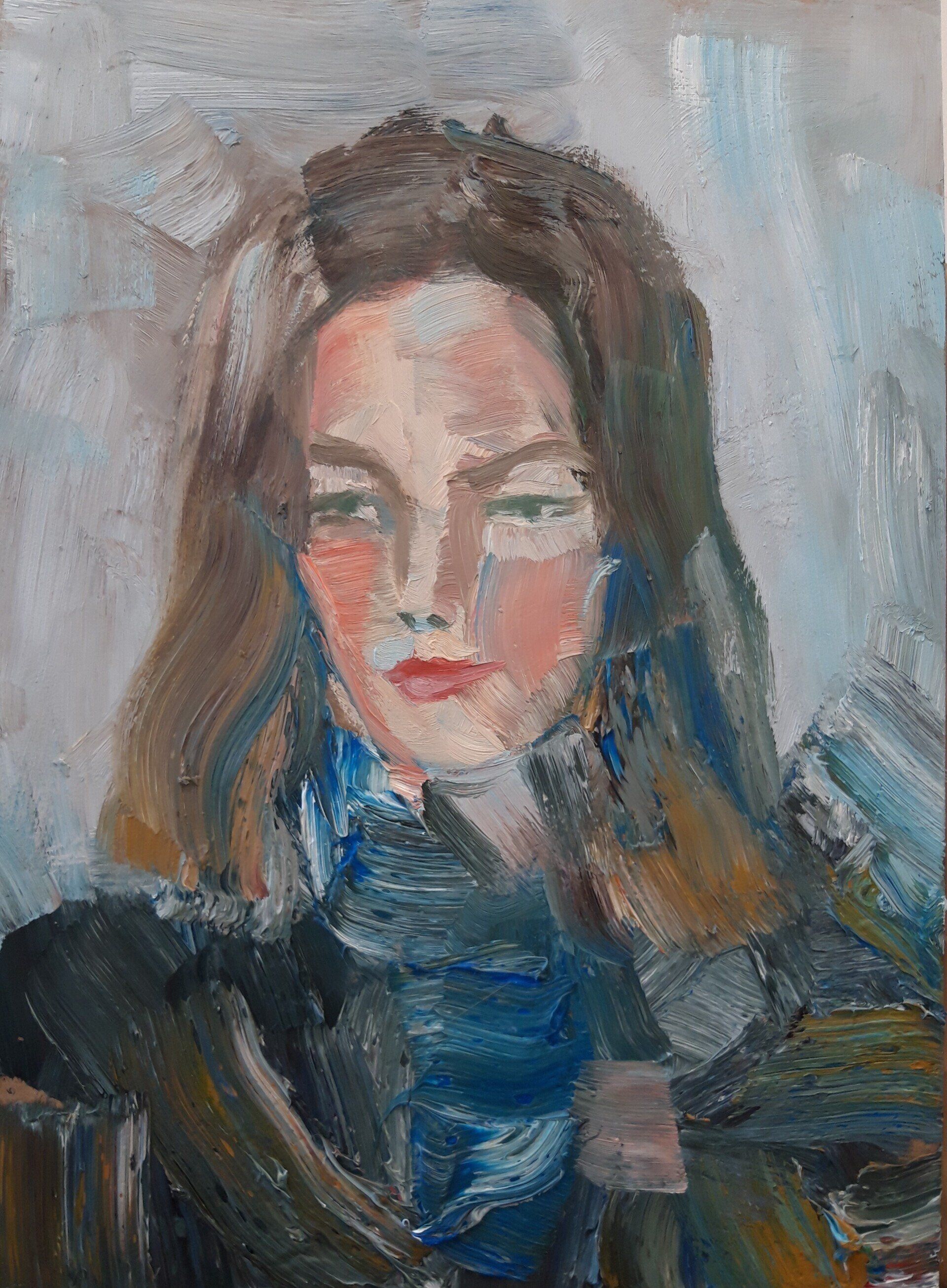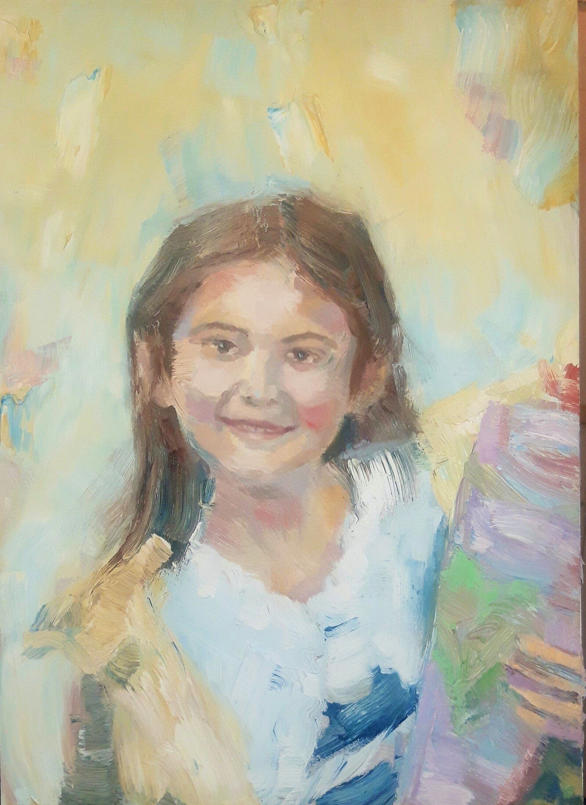 „Mädchenportrait“ – nach Foto – Öl auf Holz - 2020 - 50 x 70 cm