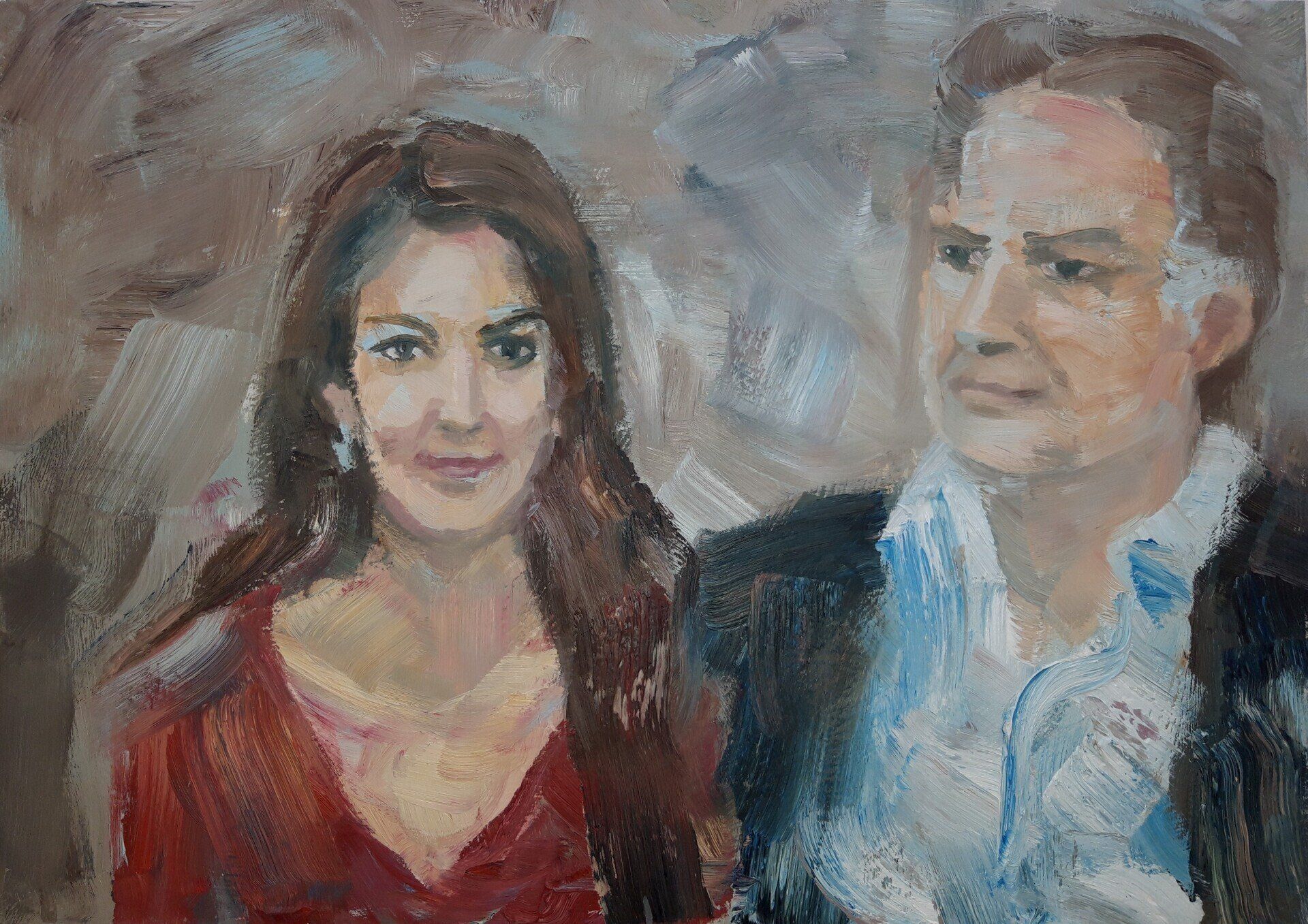 „Paarportrait“ – nach Modellsitzung – Öl auf Holz - 2018 - 100 x 70 cm