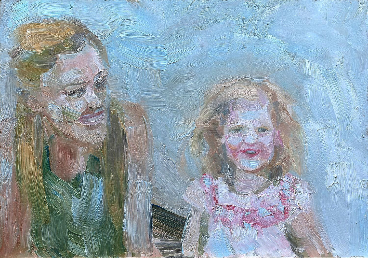 „Mutter und Kind" - nach Foto – Öl auf Holz - 2018 - 100 x 50 cm